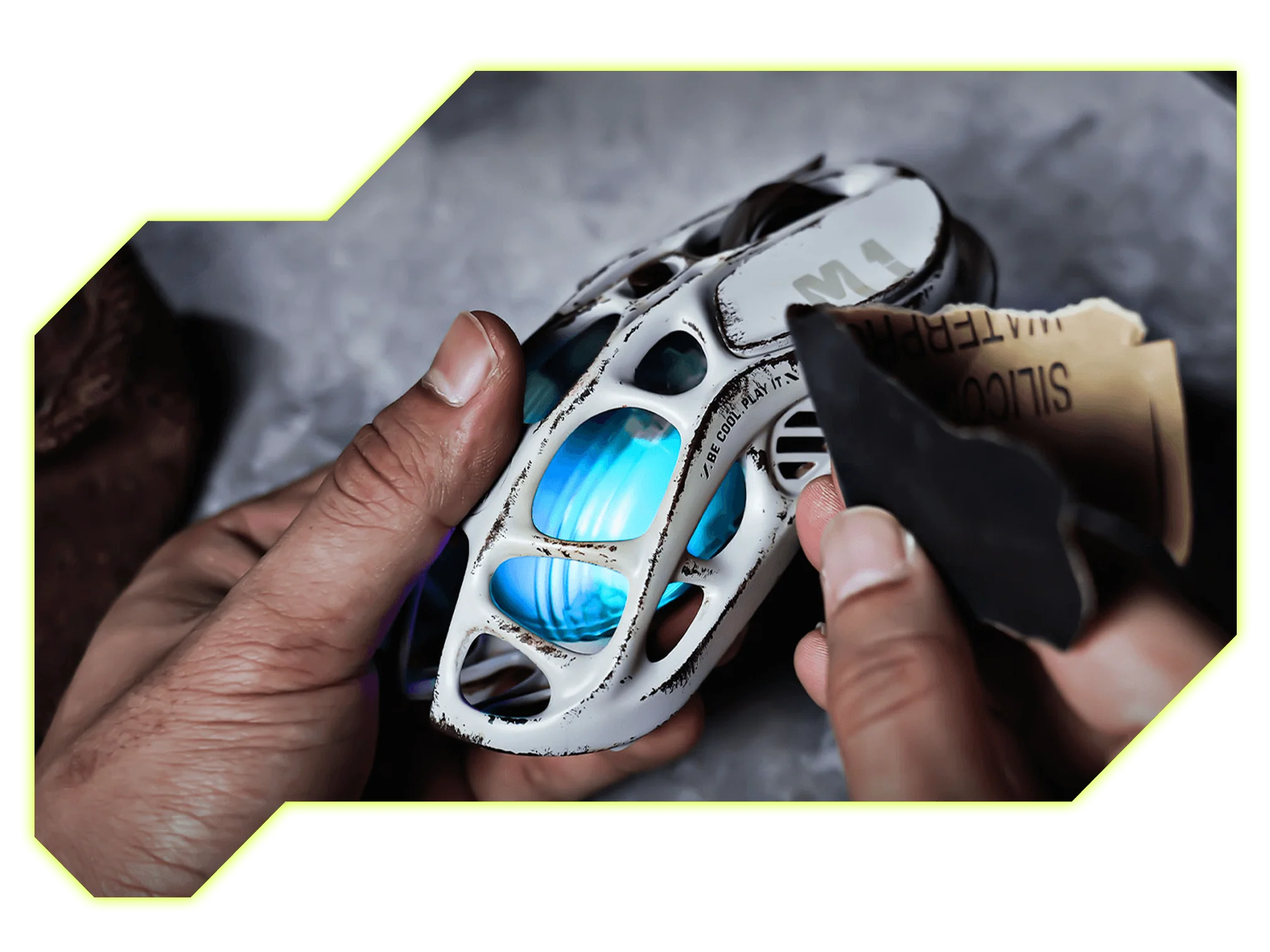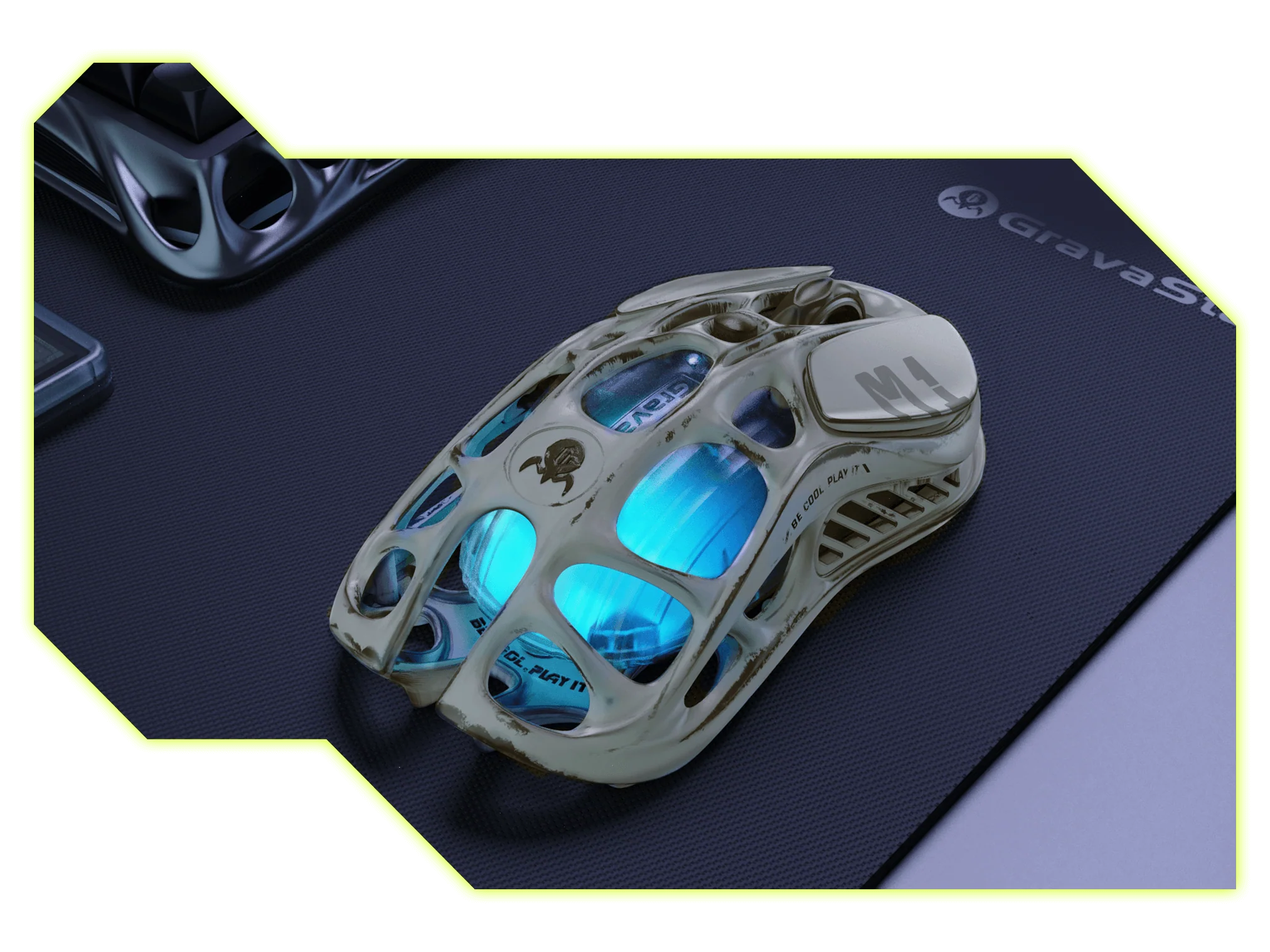 Step into the gaming arena with the M1 Pro's battle-worn magnesium alloy body. This mouse is not just a device; it's a statement. The hollowed-out design doesn't just capture eyes; it ensures your hand stays cool and responsive under pressure, marrying relentless durability with lightweight agility.
