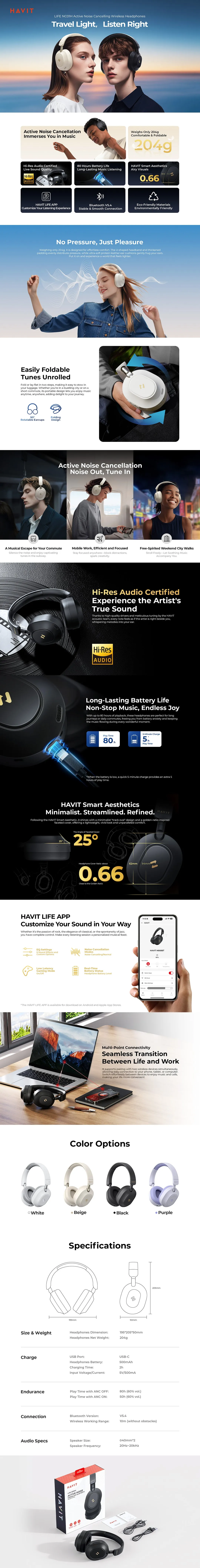 Product NameHavit H668BT ANC Bluetooth On-Ear Headphones - Biege