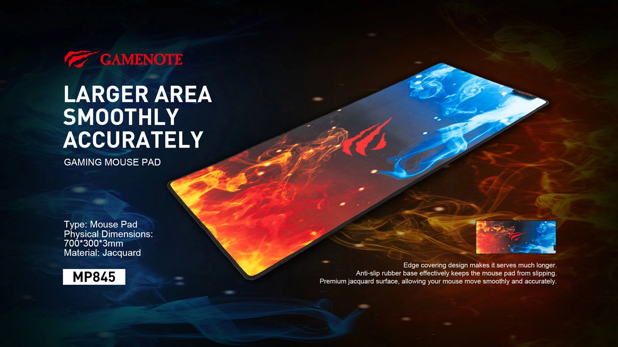 With a size of 700 x 300 x 3mm, it has more usable area to cover keyboard, mouse and other things on the desktop when playing games.