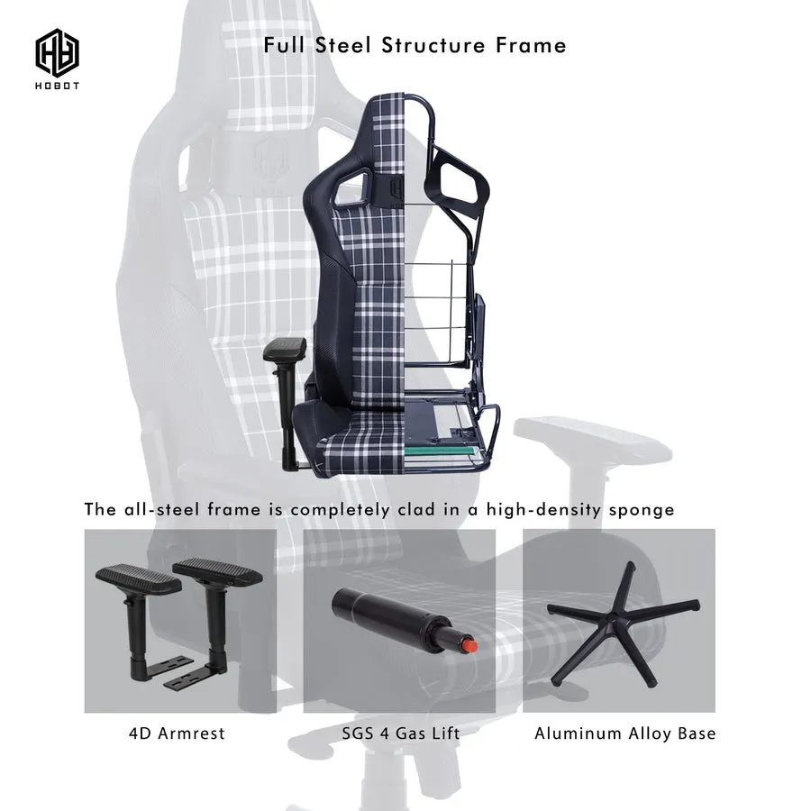 HOBOT Aviator Gaming Chair - Black - Plaid Cloth