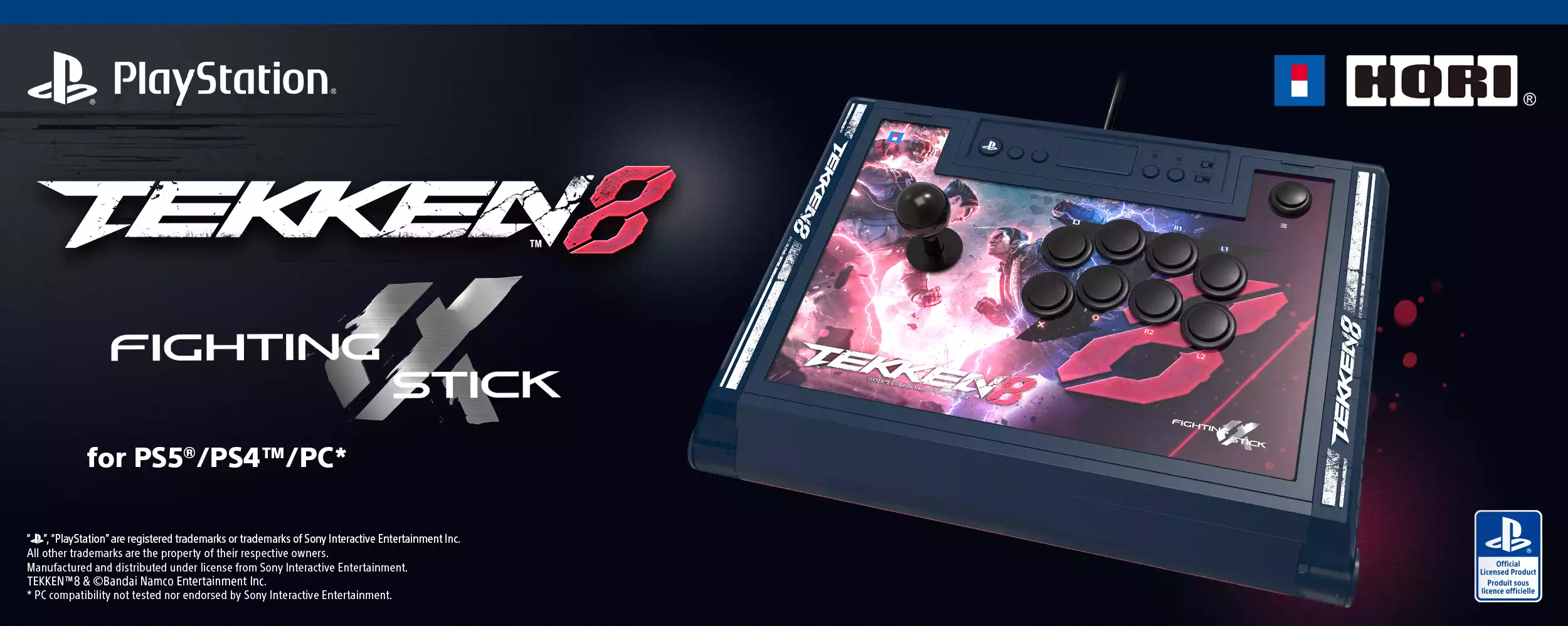Ding Ding Ding! Introducing HORI’s Fighting Stick α (TEKKEN™ 8 Edition) for PlayStation 5! The tournament grade Fighting Stick α features TEKKEN 8 themed chassis, which can be opened for easy customization and maintenance. Purchase includes downloadable Tekken 8 top panel artwork you can print and use to customize your stick. The Fighting Stick α comes equipped with HORI’s legendary HAYABUSA joystick, HAYABUSA matte high-speed buttons, fully functional touchpad, tournament lock, and a 10ft cable, as well as on-board audio and mic controls to keep all focus on the fight. Take your fighting game skills to the next level and create four custom profiles through the companion app. Easily switch between profiles on the fly using the Function Button. Play like a pro with HORI’s Fighting Stick α (TEKKEN 8). Officially Licensed by Sony and Bandai-Namco Entertainment.