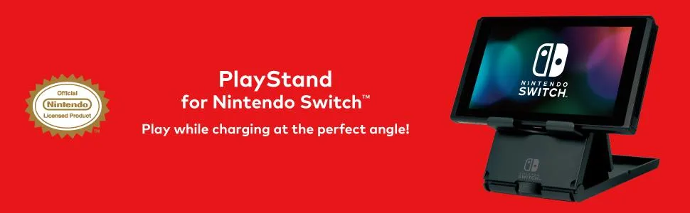 Enjoy playing your Nintendo Switch at the perfect angle with the compact PlayStand by HORI! Folds out to hold the Nintendo Switch at an adjustable angle, secured in place by rubber grips. Includes a space for the charging cable to connect so you can charge while playing! Folds up for easy portability. Officially licensed by Nintendo.