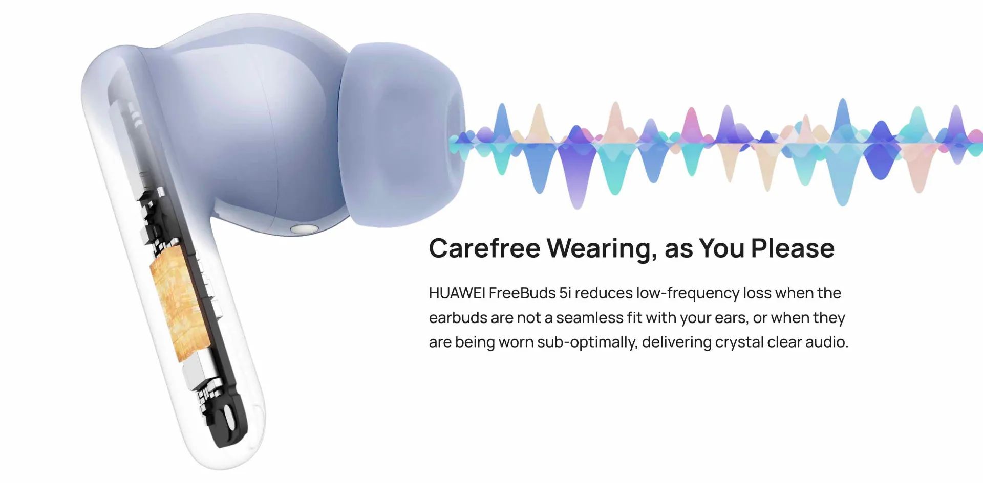 HUAWEI FreeBuds 5i ensures top-notch audio, even when there is imperfect contact between the earbuds and your ears. The low-frequency loss will never be an issue - expect nothing but clarity!