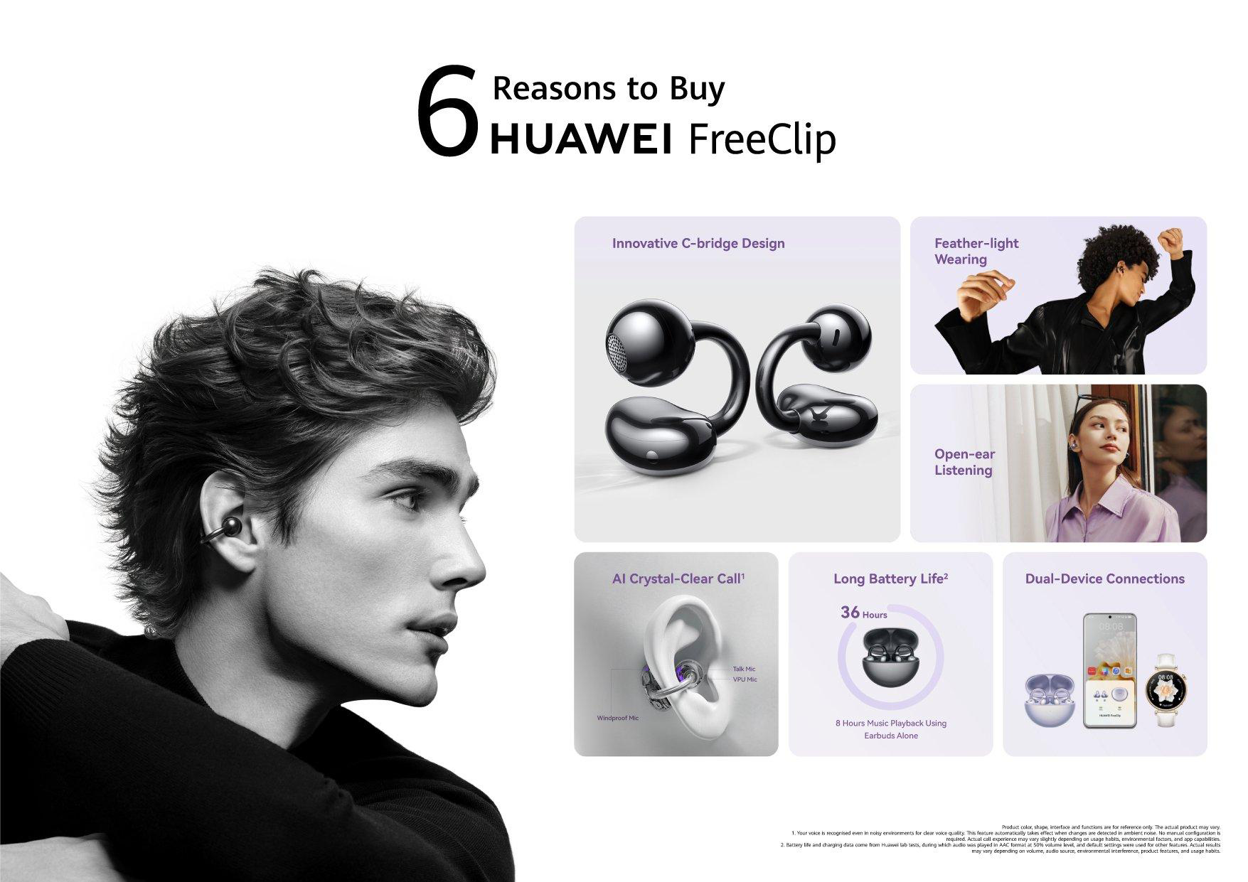 Dual-Device Connections :Connect the HUAWEI FreeClip to two devices such as phones, tablets, PCs, or watches, and seamlessly switch audio between them, whether the device runs iOS, Android, or Windows.