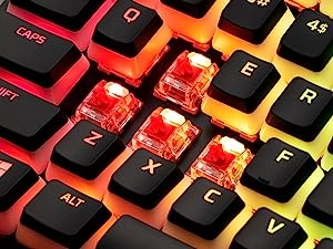 HyperX Mechanical switches These reliable key switches are a balance of responsiveness and accuracy. They feature an exposed LED for brighter RGB lighting.