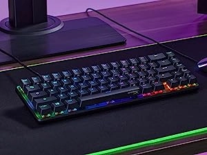 The 65% form factor frees up more mouse space than a ten keyless keyboard, but keeps dedicated arrow keys, Page Up/Down, Home, and Delete keys.