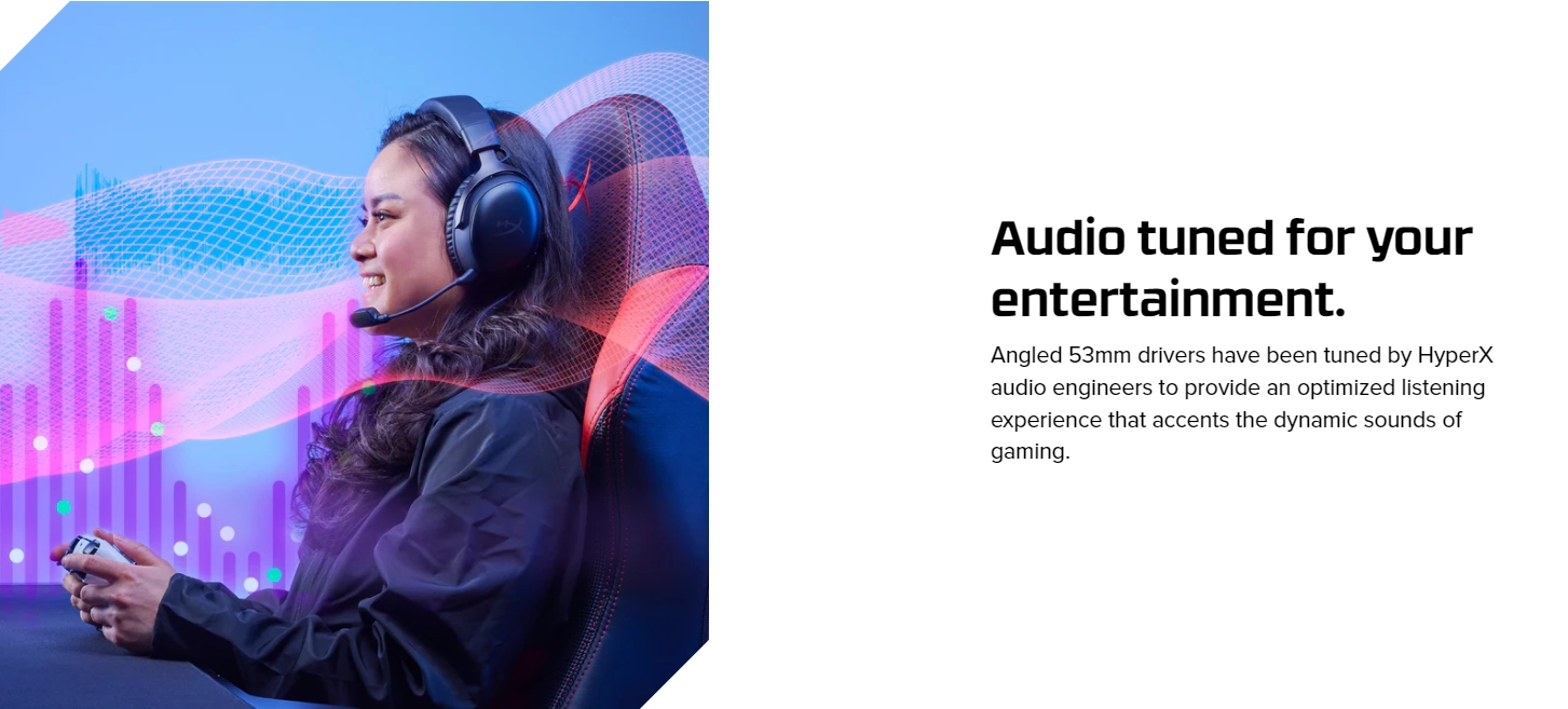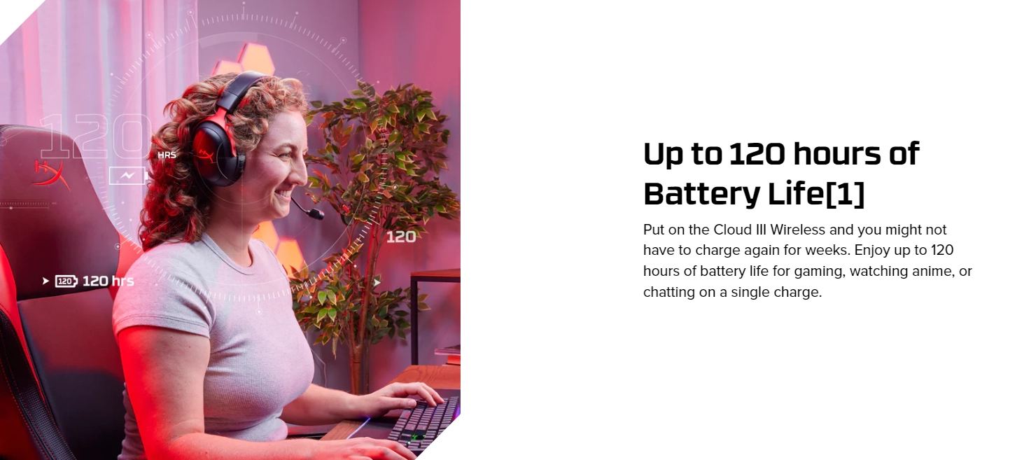 The HyperX Cloud III Wireless is a new chapter in the legend of the Cloud II. This wireless evolution builds upon the soul of the Cloud II Wireless while incorporating new tech and a bold new look. Comfort is king and the Cloud III’s fit for royalty, delivering luxurious comfort for all-day gaming or marathon streams. You’ll get a huge amount of battery life, up to 120 hours[1], for uninterrupted gaming joy. It also features retuned 53mm angled drivers and a lifetime activation of DTS Headphone:X Spatial Audio[2] for premium quality audio and sound localization. Fast, reliable 2.4GHz connectivity allows you to get rid of the cables, but not important audio. The upgraded 10mm microphone will enable crystal-clear communication when you’re calling out orders to your squad, chatting with friends, or taking calls. Simple audio controls on the headset earcup allow you to have quick, direct access to mute your mic or adjust audio volume. Compatible with PC, PS5, and Nintendo Switch, it’s the ideal wireless headset for comfortable gaming audio however you play.