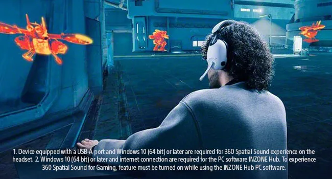 Discover 360 Spatial Sound, activated by the INZONE Hub. It’s PC software with an all-new virtualizer to reproduce an immersive 7.1ch surround sound experience. With 360 Spatial Sound combined with our hardware technology, you can pinpoint your opponent’s location wherever they’re hiding.