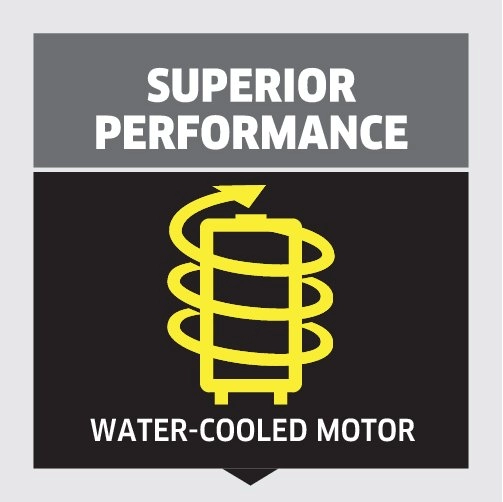 Water-cooled motor and outstanding performance The water-cooled motor impresses with its particularly long service life and high power.