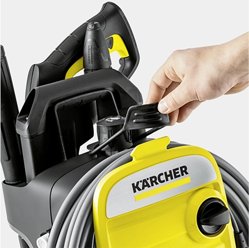 The K 7 Compact pressure washer cleans stubborn dirt from surfaces at up to 60 m² per hour, proving its credentials in terms of both ease of use and performance. Thanks to its compact dimensions, the whole device is easy to transport and can be stored anywhere – on a shelf or in a car boot. Its innovative hose storage concept enables the high-pressure hose to be wrapped around the front cover after use and secured with an elastic strap for transport. Further equipment features include two carrying handles, a height-adjustable telescopic handle, a trigger gun with Quick Connect, a 10-metre PremiumFlex-Anti-Twist high-pressure hose, a Vario Power spray lance (VPS), a dirt blaster and a water filter. The K 7 Compact can be used horizontally or vertically and is ideal for frequent use.