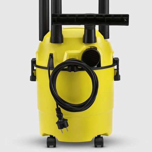 The WD 1 multi-purpose vacuum cleaner: Powerful with a power consumption of only 1,000 watts. With robust and shock-proof 15-litre plastic container. These compact machines offer exceptional advantages: these versatile machines are designed for space-saving storage and short work times. WD 1 multi-purpose vacuum cleaners are ideal for cleaning around the home, cellars and outside areas as well as car interiors or picking up small water volumes. Features: Foam filter for wet vacuuming, textile filter and paper filter bag for dry vacuuming, universal clips floor nozzle with mixed insert, blower function, accessory storage, cable hook and ergonomic carrying handle.