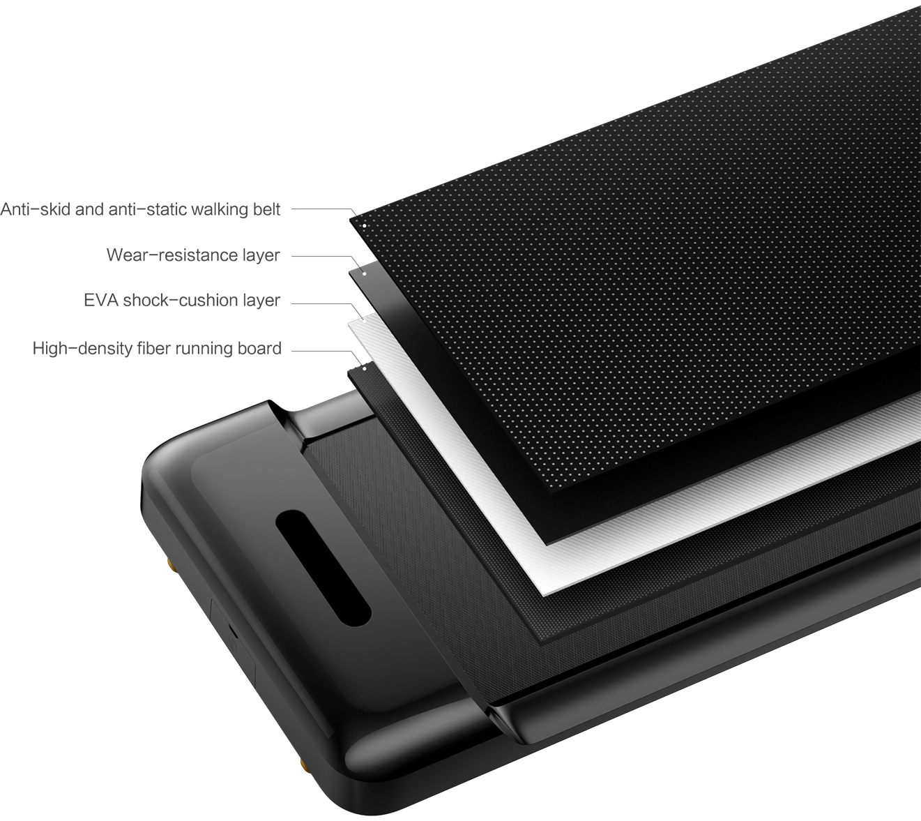 A brushless motor designed for noise reduction, steady operation, and high power With a new brushless motor, the idling noise is lowered to 65 decibels. WalkingPad will not disturb your neighbors, even if it occurs late at night.