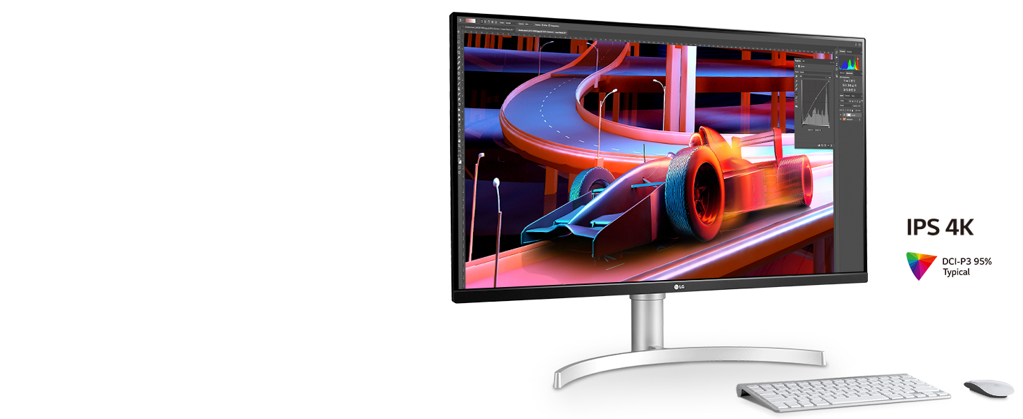 With DCI-P3 95% (Typ.) and HDR10 in 32-inch 4K IPS, offering 4 times as many pixels as Full HD, your work shines for clear, and precise color as desired, resulting in easy reproduction of images on screen.