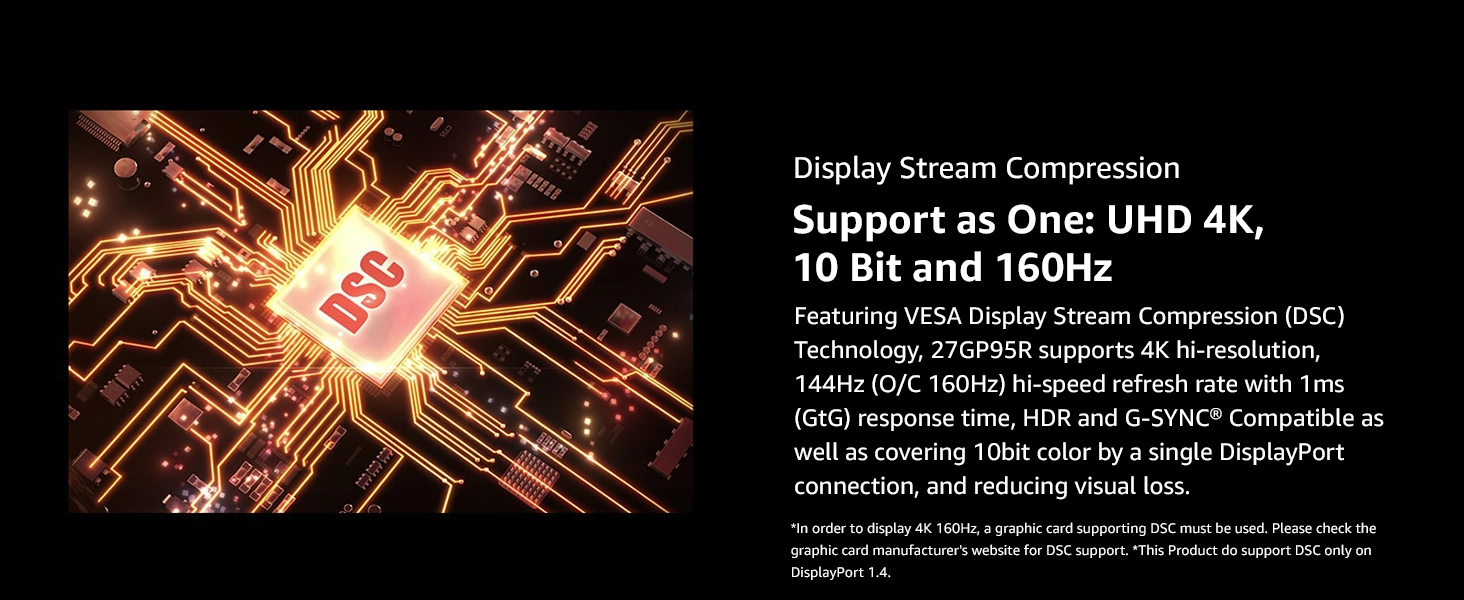 3840 x 2160 10bit @ 160Hz (O/C, DSC On)