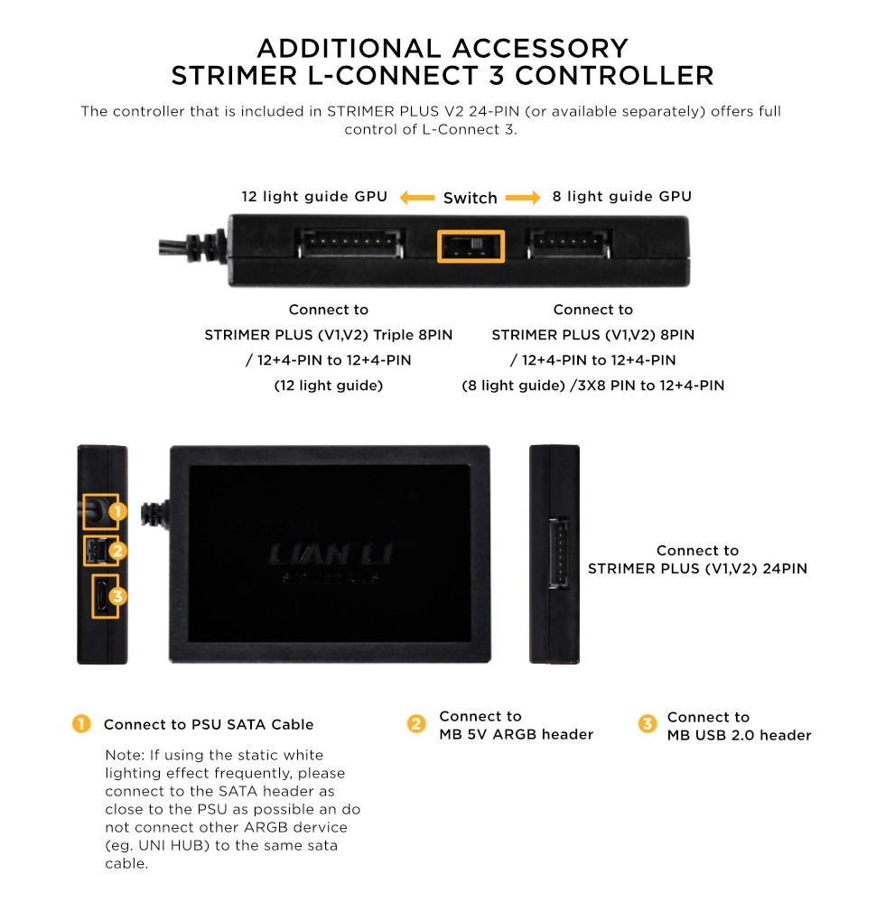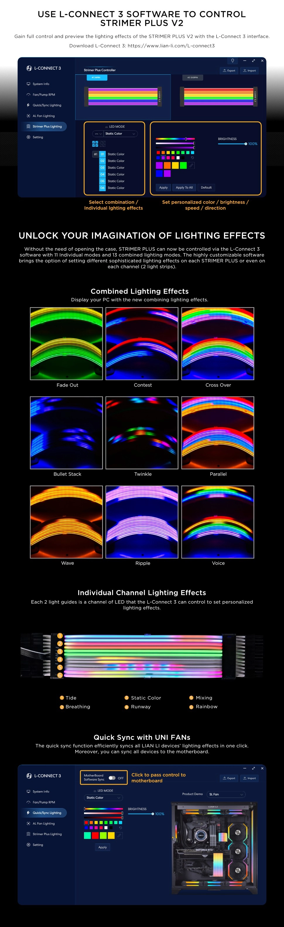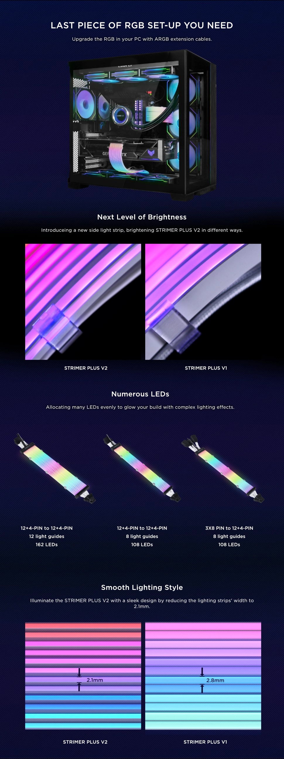 LIAN LI STRIMER PLUS V2 12+4 to 12+4-Pin, 8 Light Guides Addressable RGB Extension Cable best price from Alfuhod Shop online LIAN LI STRIMER PLUS V2 12+4 to 12+4-Pin, 8 Light Guides Addressable RGB Extension Cable and free same day delivery from Alfuhod in Kuwait.