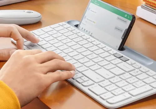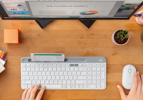 Get a clean, modern desk setup and make a visual statement thanks to the ultra-slim profile and minimalist design of the K580 Slim Multi-Device.