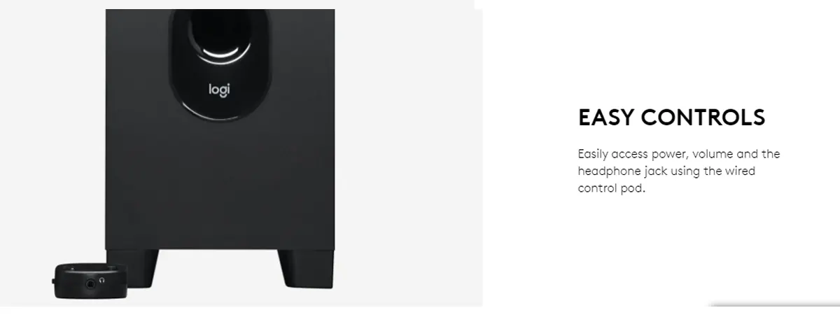 This 2.1 speaker system delivers balanced acoustics and provides enhanced bass from a compact subwoofer. Connect any device via the 3.5 mm input and easily access power and volume using the wired control pod.