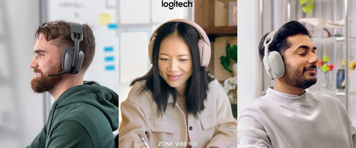 With its stylishly minimalistic design, the graphite-colored Logitech Zone Vibe 100 Wireless Headset fits in to almost any situation, whether you're on a professional video call or relaxing to music at home. The 40mm drivers with a 20 Hz to 20 kHz frequency response deliver rich bass, clear highs, and low distortion for both entertainment and calls. Its built-in, noise-canceling microphone uses beamforming technology in addition to digital signal processing (DSP) to clearly capture your voice while reducing background sounds. Flipping the microphone arm up and tucking it into its storage compartment automatically mutes it, providing you with both privacy and a clean look.