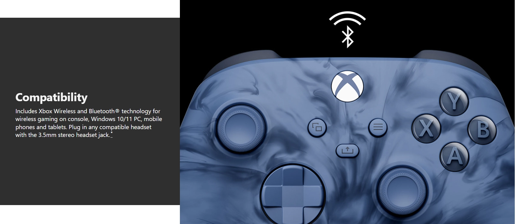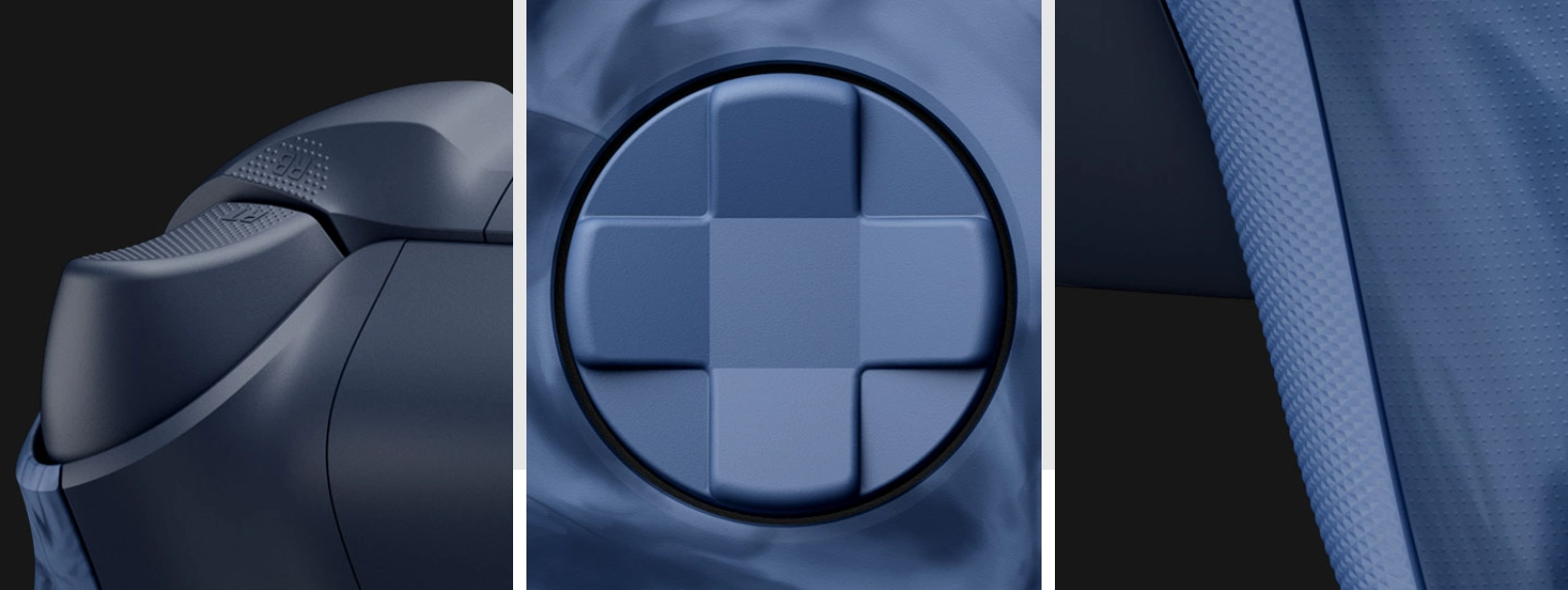 Stay on target Stay on target with a hybrid D-pad and textured grip on the triggers, bumpers, and side caps. Hold on to the action with rubberized, blue diamond-pattern grips on the back case.