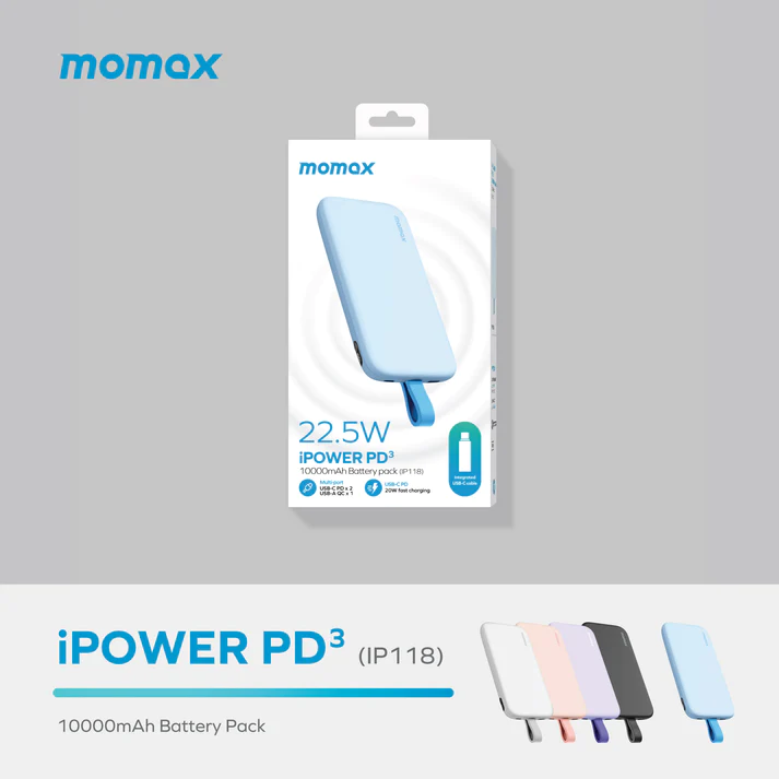 Multiple Ports | USB-C and USB-A ports plus the built-in USB-C charging cable can charge three devices at the same time, which is efficient and time-saving.