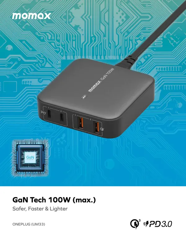 Product NameMomax ONEPLUG 100W 4 Port GaN Desktop Charger - Space Grey