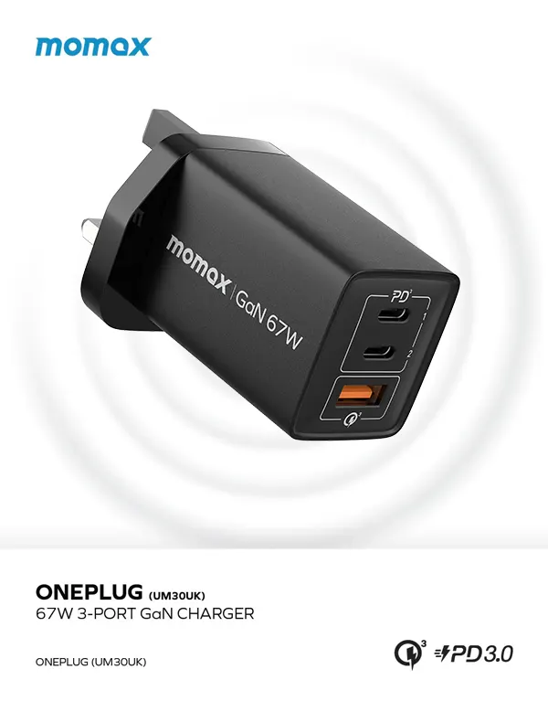 Product NameMomax OnePlug 67W 3-Port GaN Charger - Black