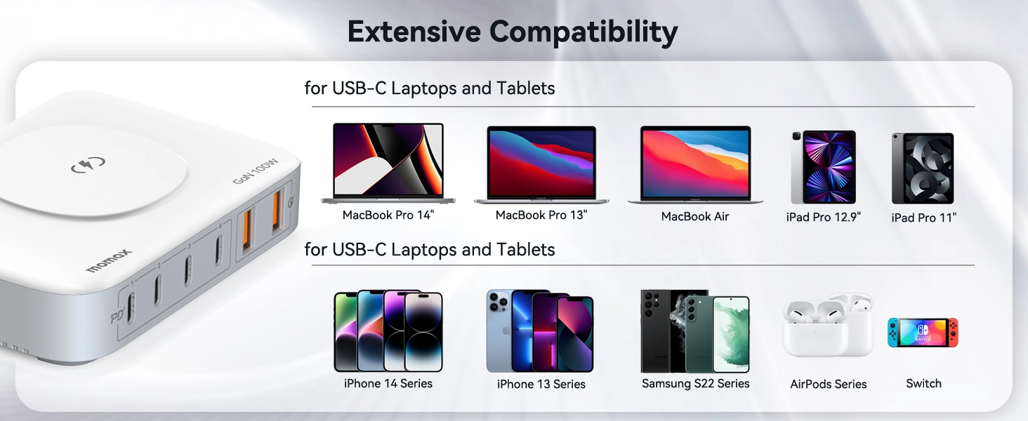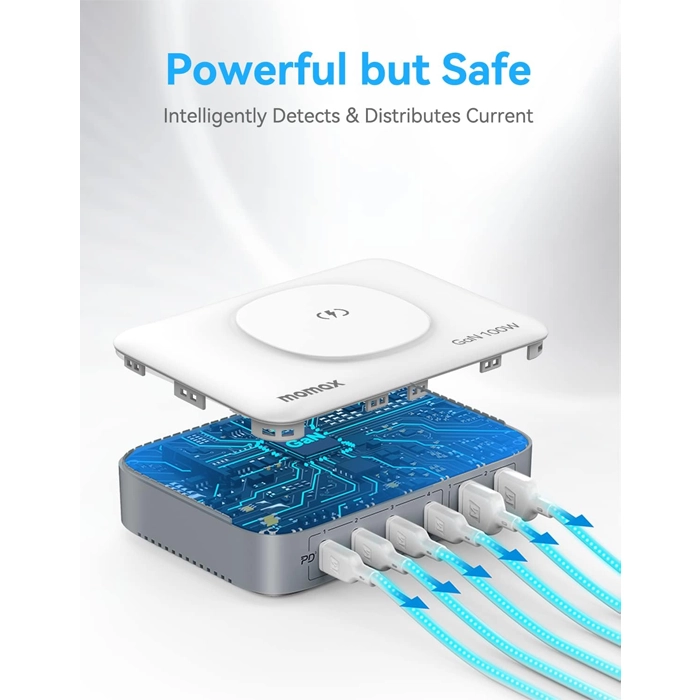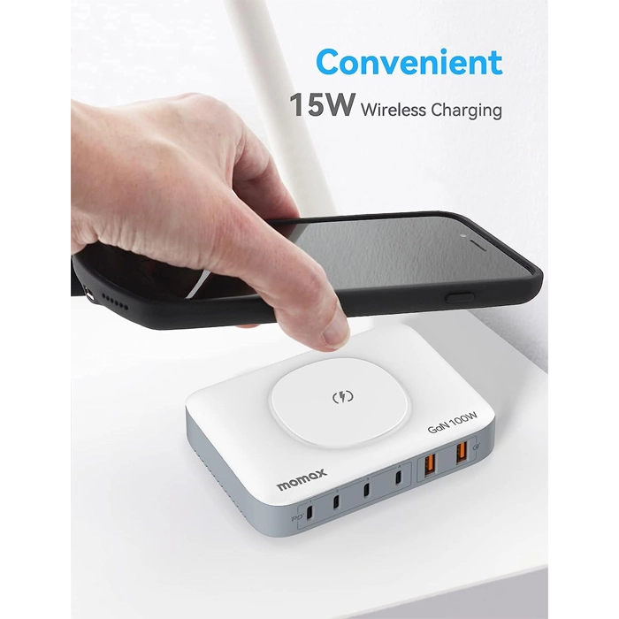 Product NameMomax - Oneplug Gan 100w 6-port Gan With Wireless Charging-white