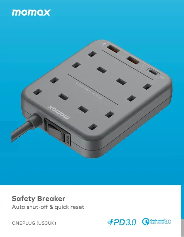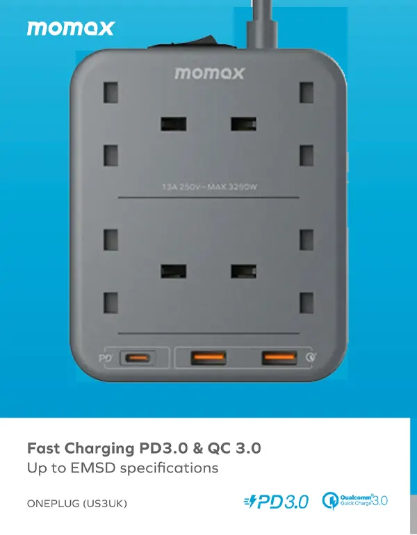 Product NameMomax ONEPLUG PD20W 2A1C 4 outlet Power Strip With USB - Grey