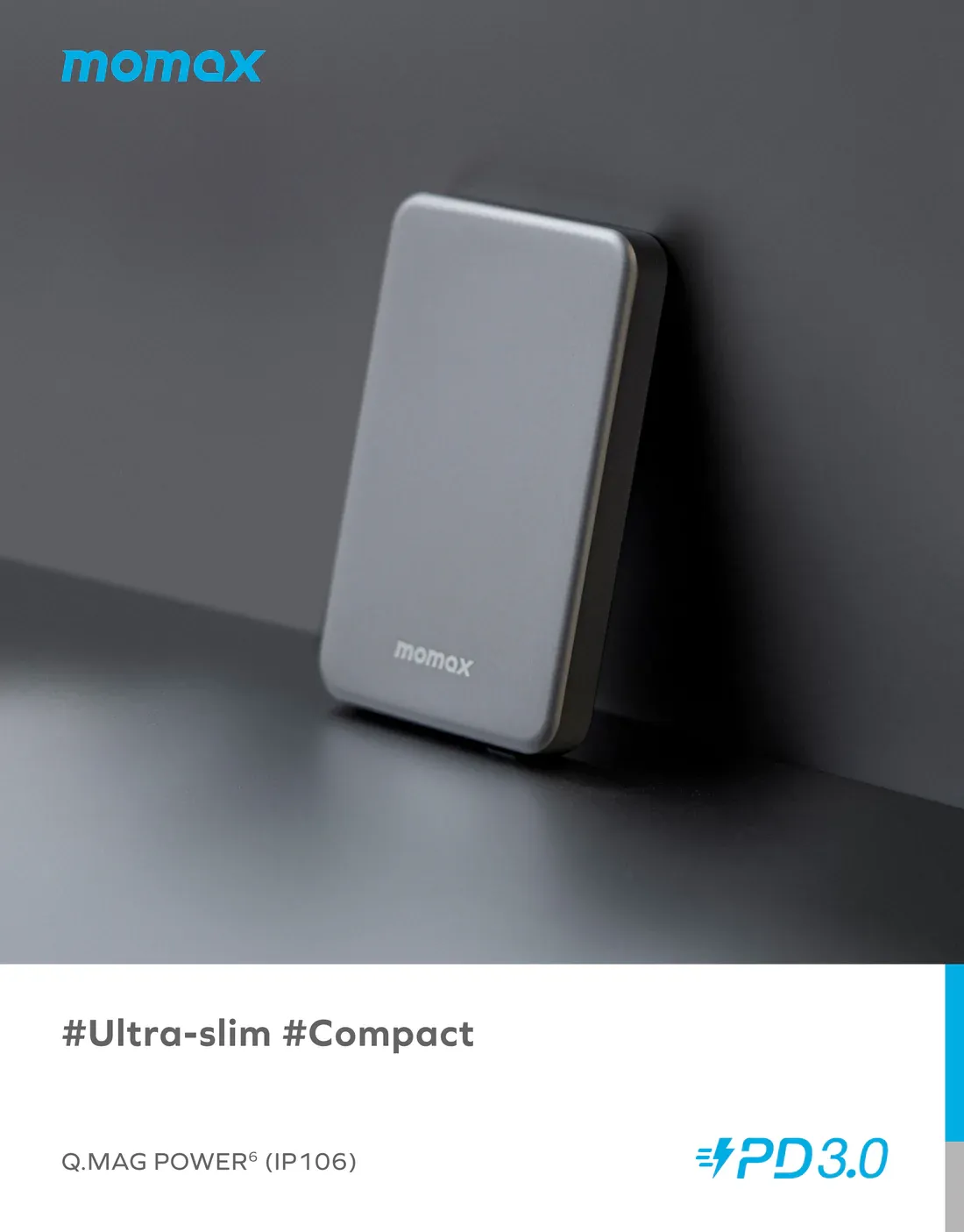 Shop online Momax Q.Mag Power 6 Magnetic Wireless Battery Pack 5000mAh - Space Grey and free same day delivery from Alfuhod in Kuwait.