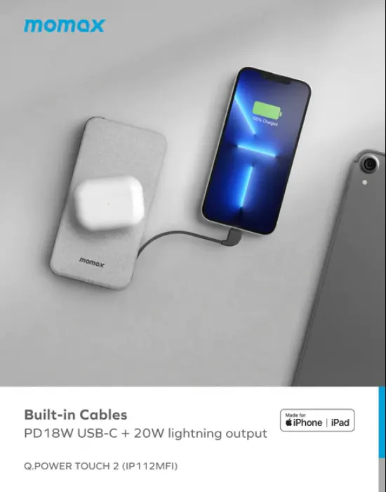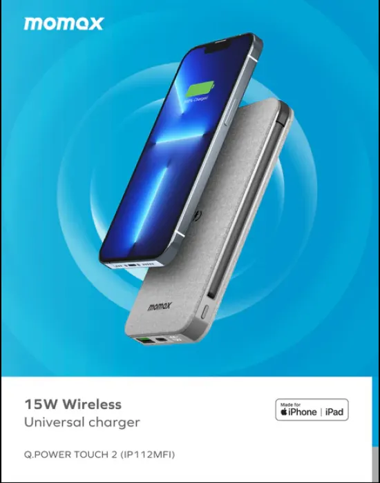Product NameMomax Q.Power TOUCH 2 Wireless Battery Pack 10000mAh - Light Grey