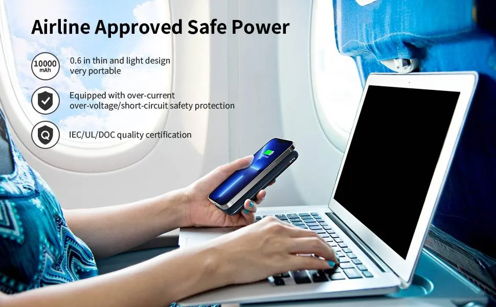 Wireless portable charger support 5W, 7.5W, and 10W Max wireless fast charging. Conveniently charge your QI-Certified devices up to 10W without connecting cable. Special charging mode for low current devices below 60mA (e.g. Airpods Pro / Fitness Tracker, etc.)