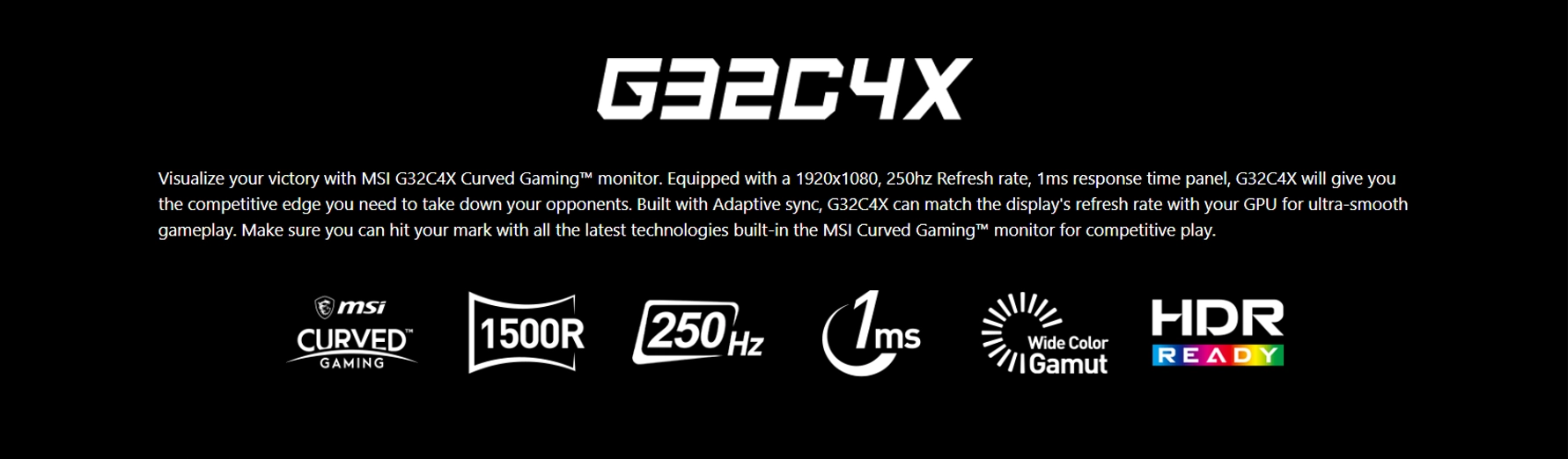 MSI G32C4X 32" FHD VA, 250hz, 1ms, AMD FreeSync Premium, Curved Gaming Monitor - Black (33445) best price from Alfuhod Shop online MSI G32C4X 32" FHD VA, 250hz, 1ms, AMD FreeSync Premium, Curved Gaming Monitor - Black (33445) and free same day delivery from Alfuhod in Kuwait.