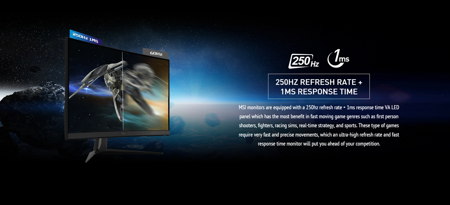 1ms response time - eliminate screen tearing and choppy frame rates.