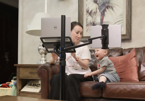 Standard double clamp, suitable for all series of mobile phones and tablets, lifting knob, the height can be adjusted up and down after loosening the knob
