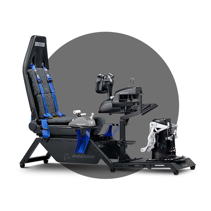 Take it to the skies with the Next Level Racing® Flight Simulator Boeing Commercial Edition, our first flight dedicated cockpit designed specifically for the aviation community in collaboration with The Boeing Company. Branded in Boeing inspired components like the faux wool seat covering and Boeing blue highlights, the Boeing community can now interact with a flight cockpit that is inspired by a commercial Boeing flight deck. The Next Level Racing® Flight Commercial Boeing Edition Cockpit offers a wide range of configurations to suit different classes of flight, including Combat, Space, Commercial, and General Aviation. The Flight Simulator Commercial Boeing Edition Cockpit is compatible with a wide range of electronics such as yokes, joysticks, and throttles for all major brands. With a growing ecosystem of flight accessories by Next Level Racing®, the flight community can expect a solution that is suited for flight simulation. The Next Level Racing® Flight Simulator Boeing Commercial Cockpit is specifically designed to have the Thrustmaster® TCA Yoke Pack Boeing Edition directly mounted to the cockpit with a true positioning of the peripheral for the most realistic flight simulation experience.