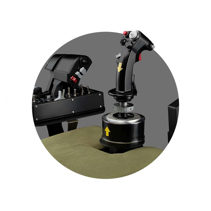 Whether in combat or over the Atlantic Ocean for a long haul, the flight simulator fully dedicated flight seat offers a wide range of features for added comfort. Constructed with High-density foam to support the user for long hours of flight. A combination of PU Leather and faux wool seat covering is used for the base and the backrest of the seat to ensure breathability and longevity of the seat during flight simulation. The unique design of the seat provides a double recliner for added strength and fine-tuning angles to suit a wide range of users. The Fight Simulator Seat has been ergonomically positioned to sit at a higher distance for positioning the user over flight rudders. The dedicated Flight Simulator seat also provides a unit cut out design to ensure the best position of Joystick between the legs for combat flight