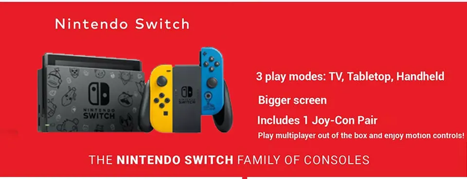 Nintendo Switch is a breakthrough home video game console. It not only connects to a TV at home, but it also instantly transforms into an on-the-go handheld using its 6.2-inch screen. For the first time, players can enjoy a full home-console experience anytime, anywhere.