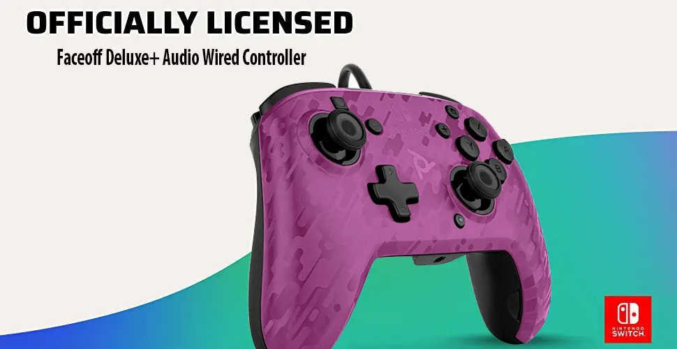 Product NamePDP Gaming: Nintendo Switch - Faceoff Deluxe+ Audio Wired Controller - Purple Camo