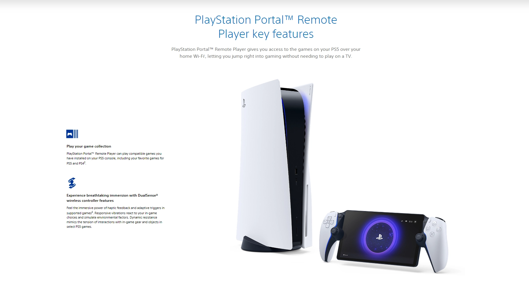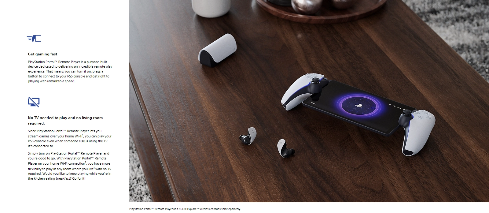 PlayStation Portal™ Remote Player is a purpose-built device dedicated to delivering an incredible remote play experience. That means you can turn it on, press a button to connect to your PS5 console and get right to playing with remarkable speed.