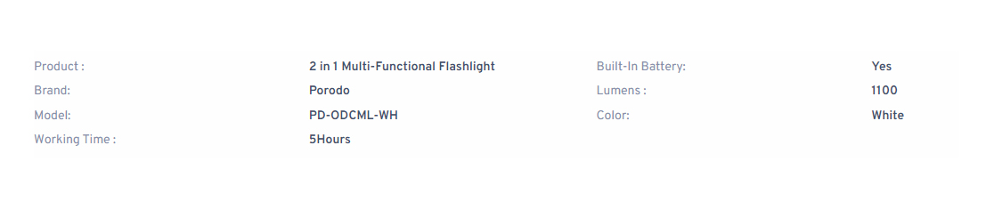 Product NamePorodo 2 in 1 Multi-Function Outdoor FlashLigh 1200mah – White