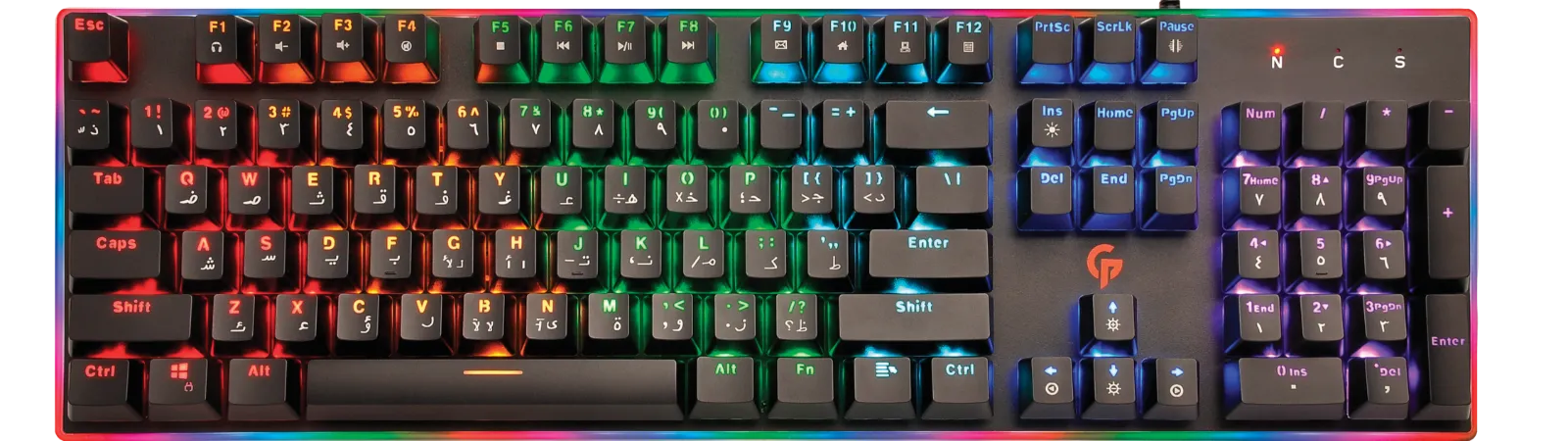 9 Backlight Effects, LAYOUT: 104 Keys, US+Arabic