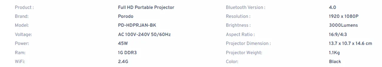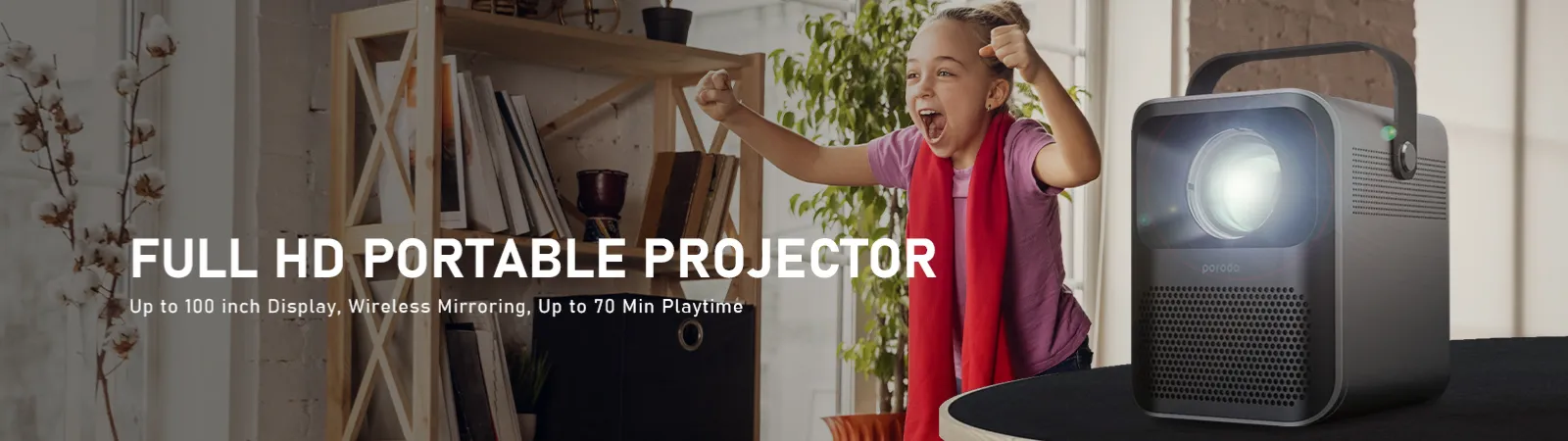 Porodo Portable Projector PD-HDPRJAN-BK Full HD Portable Projector - Black best price from Alfuhod Shop online Porodo Portable Projector PD-HDPRJAN-BK Full HD Portable Projector - Black and free same day delivery from Alfuhod in Kuwait.
