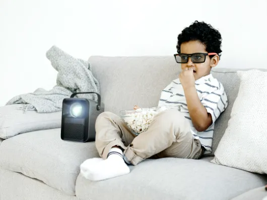 Porodo Lifestyle Full HD Portable Projector comes with a 2600mAh battery and it is compatible with the Android operating system which can be compatible with the application then you can share your phone screen through this portable projector. It can display up to 100 inches. You can find the wireless mirroring opportunity in this portable projector thus it has 1 GB DDR3 RAM. You can find three kinds of ports in this projector which are USB, HDMI, 3.5 AUX. you can use this projector for up to 70 min playtime.