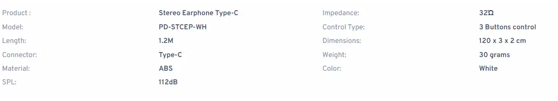Product NamePorodo Soundtec Stereo Earphones Type-C with High-Clarify Mic - White