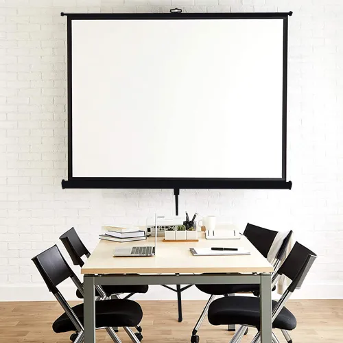 Experience larger than life entertainment and presentation power with this Portable Projector Screen. This durable screen with stand makes sharing media with friends and colleagues easy. The perfect addition to an office or conference room, classroom, or home entertainment space, the portable projector screen is both convenient and functional. Watch your favorite movies on the big screen, play video games with friends, or share work-related presentations or videos for a larger group. With this projector screen you’ll enjoy a smooth, effective surface for projecting a wide variety of HD media.
