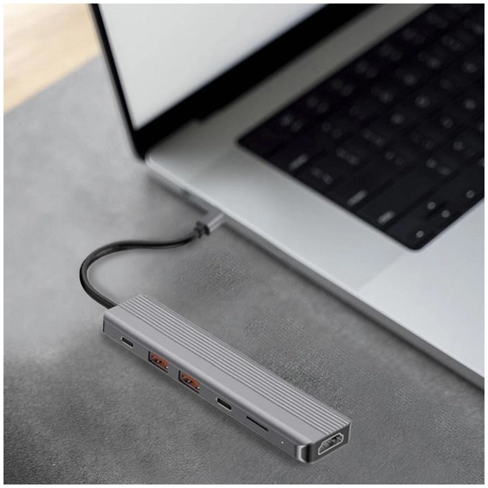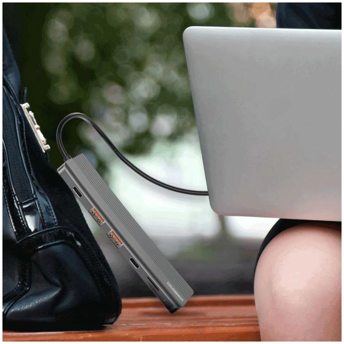 Powerology 6-in-1 Slim 4K HDMI USB-C Hub is a multi-port Hub with the ability of fast charging (PD100W) and high-speed data transfer (10Gbps). It features USB-A and USB-C version 3.2 ports, which refer to the latest standard for USB connectors, accommodating a wide range of devices. The 4K HDMI Ultra HD output ensures a crystal-clear visual experience. Additionally, it is provided with the Micro SD slot to allow easy access to memory cards, ideal for photographers and content creators. Due to its connectivity, streamlined setups, efficient data transfer, charging possibility, and comprehensive features, Powerology 6-in-1 Hub is the perfect choice for professionals who are always in need of extra port for linking more electronic devices in order to optimize their device capabilities.