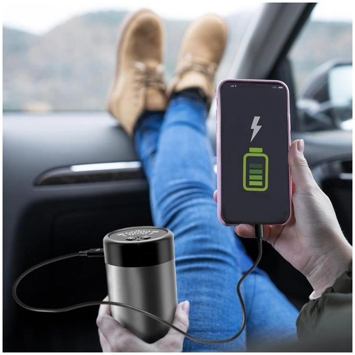 Powerology Cordless Portable Air Compressor is a 3-nozzle, multi-purpose tool designed for inflating and deflating various objects including cars and bikes. With its 150PSI (Pounds per Square Inch) capability, it can quickly inflate items to 30-35 PSI in less than 2 minutes. It also has a flashlight and a 5200mAh power bank with USB-C connectivity which makes it suitable for outdoor activities and emergencies. Therefore, it is not just an inflation tool but a comprehensive gadget that can charge devices and provide light, making it an invaluable addition to any travel or emergency kit. Its design is compatible to work properly in temperatures from -10°C to 50°C, which provides a perfectly safe function due to the built-in control feature.