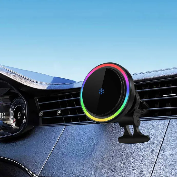 The Powerology Qi2 Standard 15W iPh15 MagSafe Fast Charger is an advanced and efficient charging solution featuring a powerful magnet for secure attachment and RGB lighting for a stylish touch. It includes a semiconductor cooling system to prevent overheating and maintain optimal performance. With an input of DC 12-24V and dual outputs (Output C1 and Output C2) each providing 5V/3A, 9V/2.25A, or 12V/1.67A, the charger delivers a total output of 20W + 20W. This fast charger ensures reliable and efficient power delivery for your iPhone and other compatible devices.