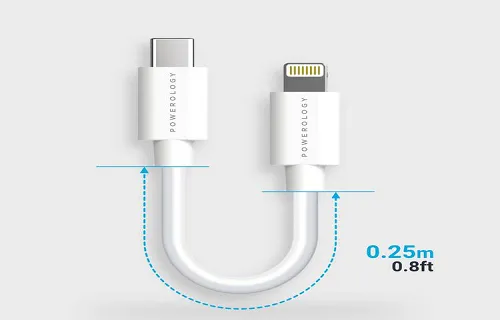 Powerology USB-C to Lightning Cable 0.25m - White
