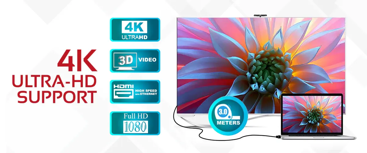 This HDMI cable offers full 4K compatibility, so you can connect a 4K-compatible device to your corresponding display and watch your media and games come to life.